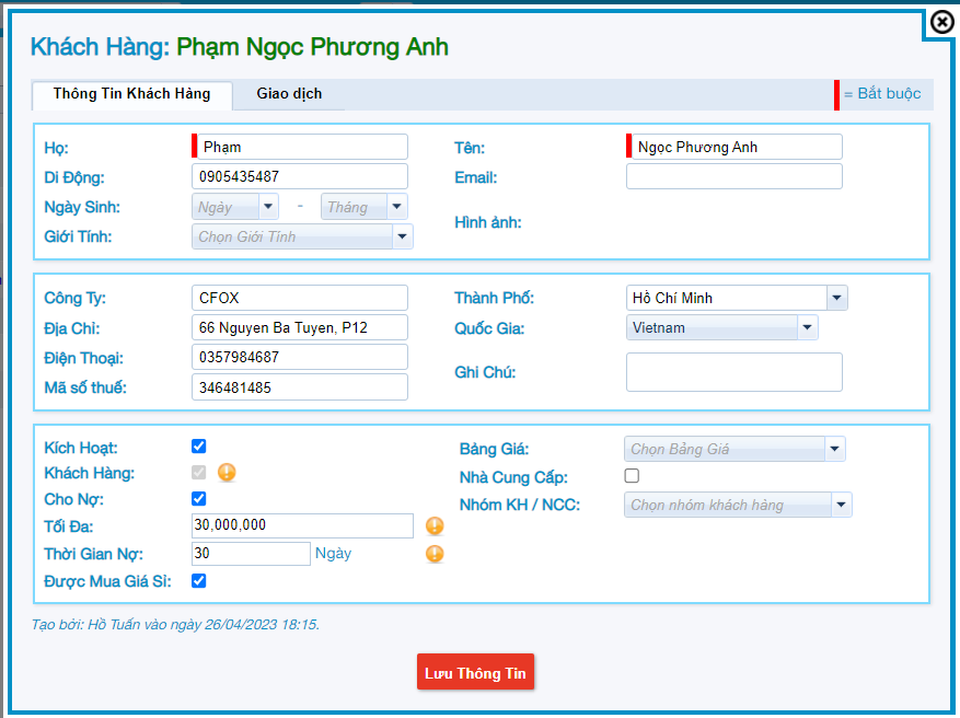 Thiết lập hạn mức công nợ cho từng khách hàng