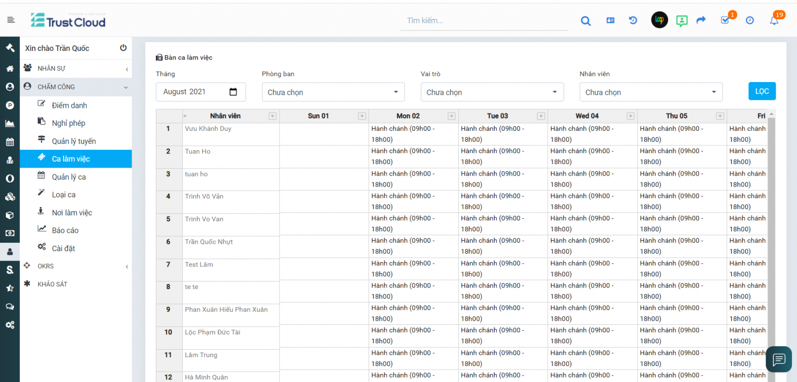 Áp dụng ca làm việc cho tất cả nhân viên hoặc một nhóm đối tượng.