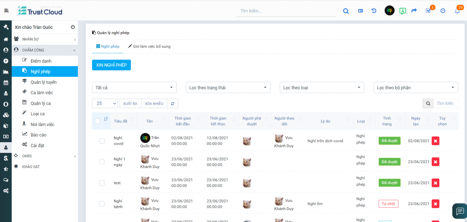 Xin nghỉ phép trên hệ thống dễ dàng.
