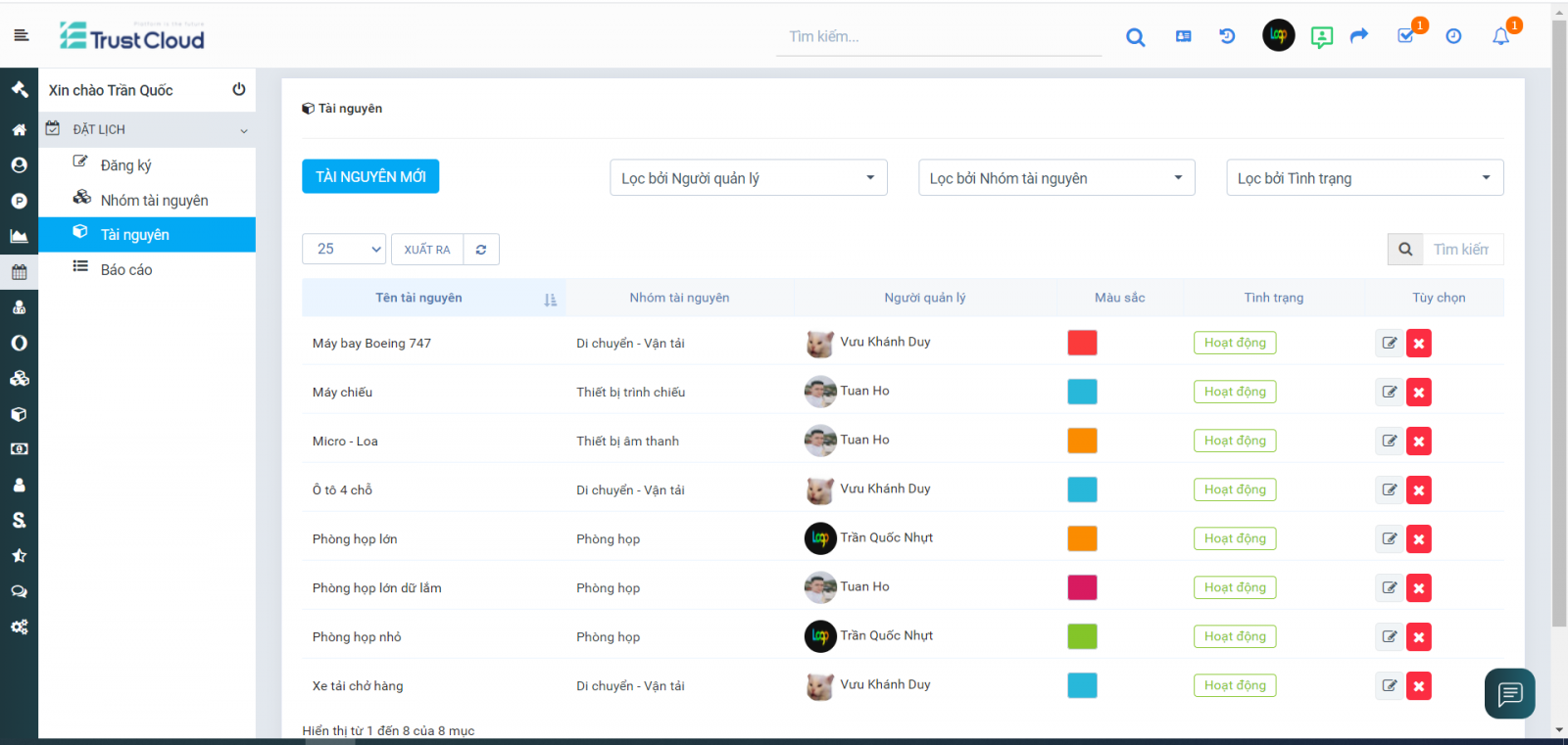 Tài nguyên dùng chung thể hiện rõ ràng để mọi người có thể đặt lịch sử dụng.