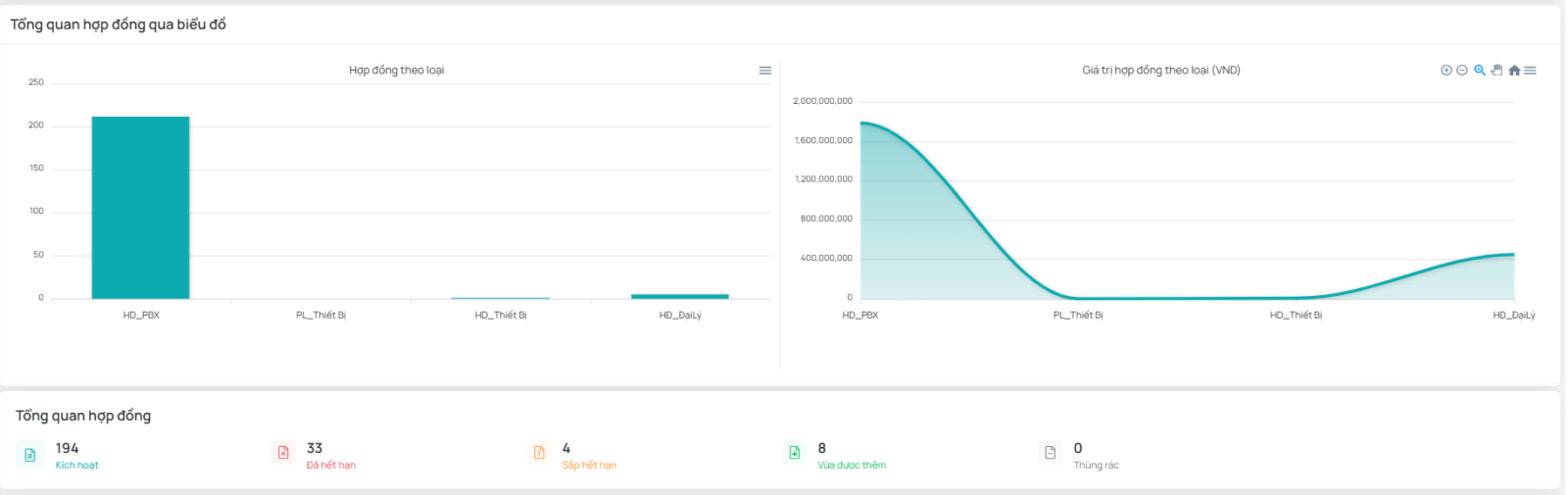 - Thống kê hợp đồng theo loại
