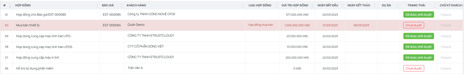 - Trạng thái hợp đồng