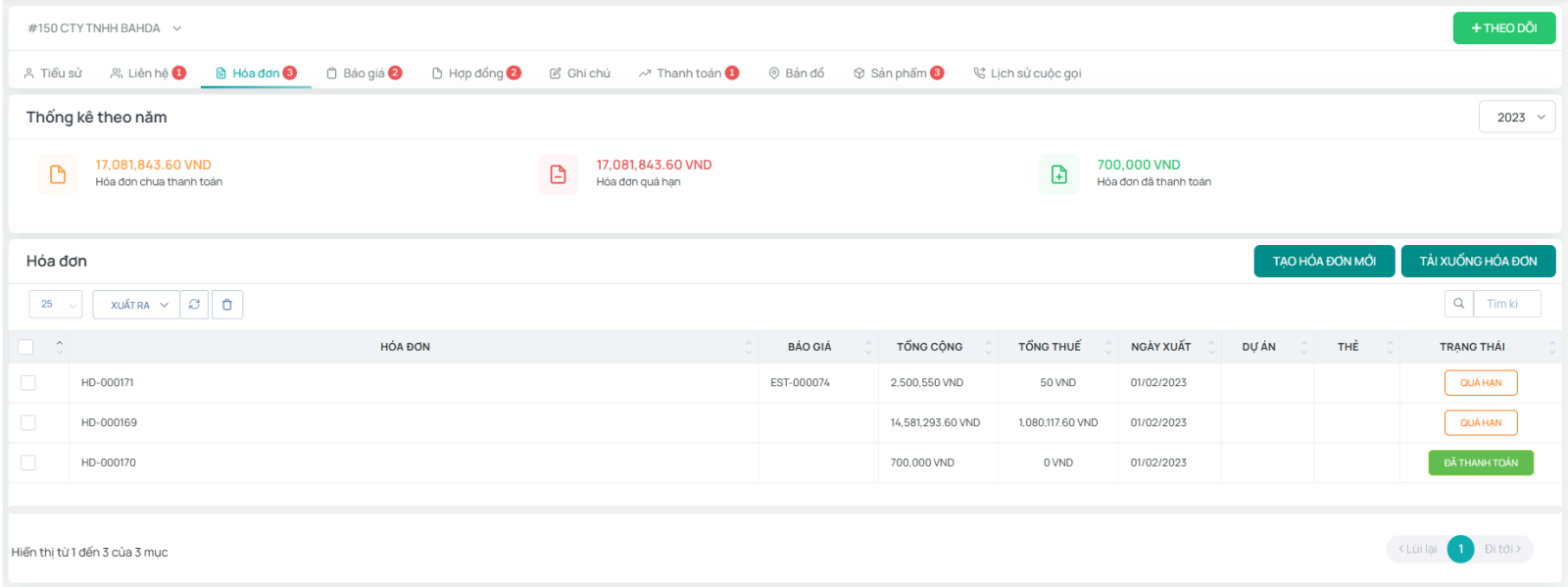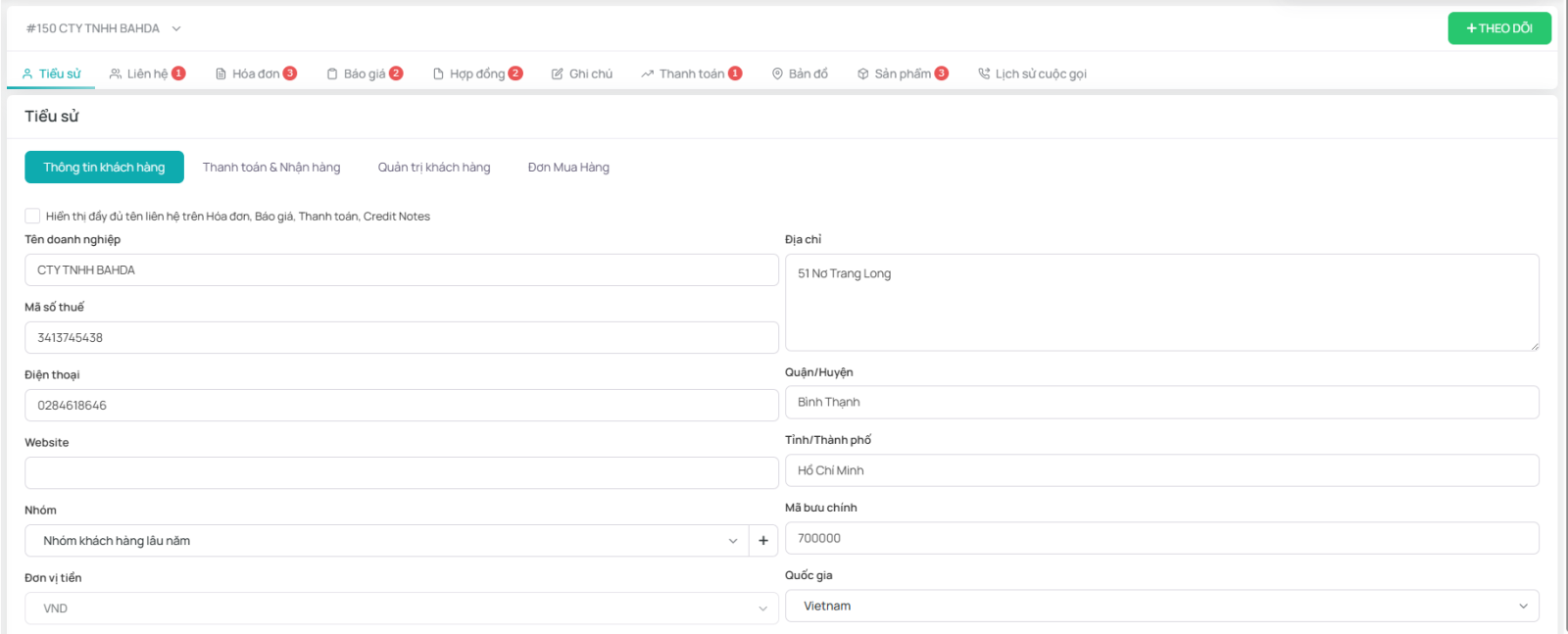 • Xem lịch sử hoạt động của khách hàng, sản phẩm - dịch vụ khách hàng đã sử dụng