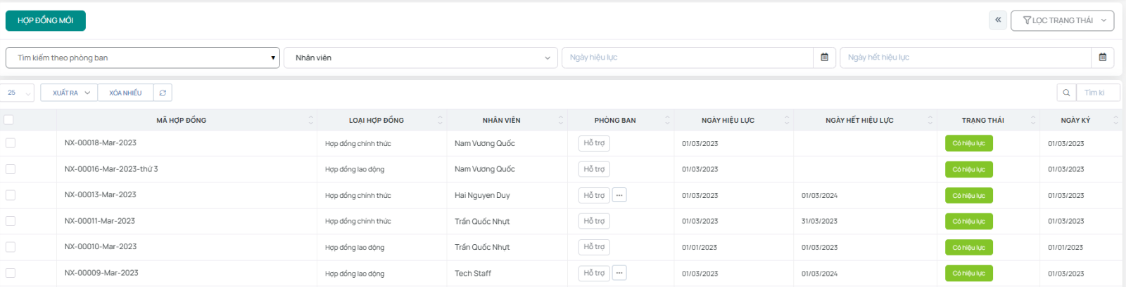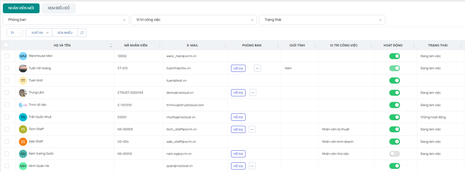 Các tính năng nổi bật của ứng dụng Nhân sự